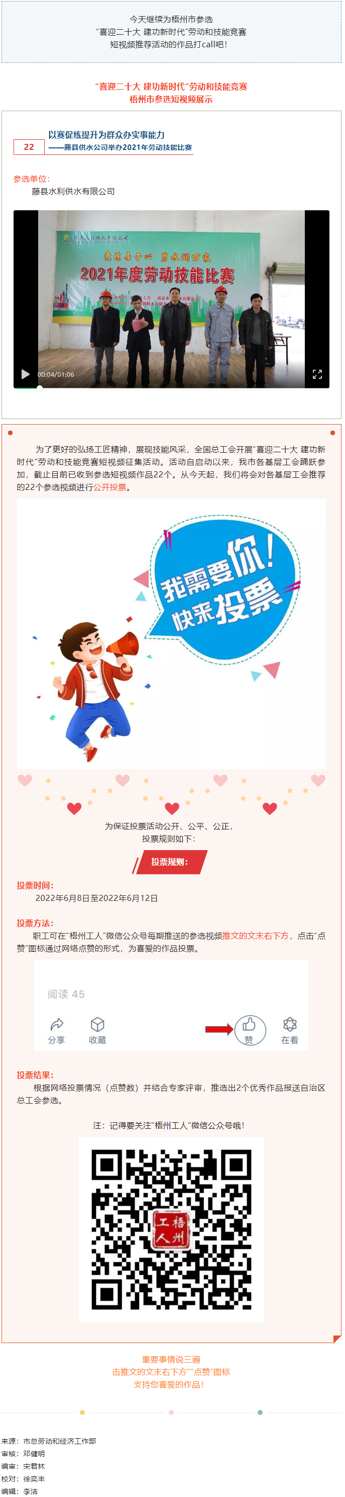 藤縣水利供水有限公司參選作品丨“喜迎二十大 建功新時(shí)代” 勞動(dòng)和技能競賽短視頻投票活動(dòng)開始啦!